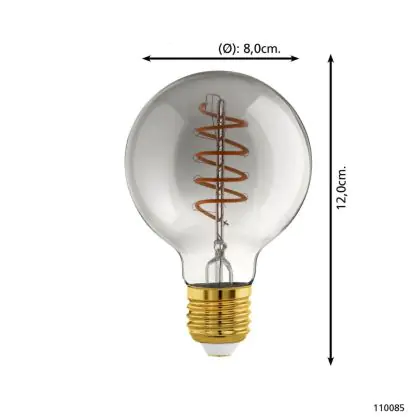 Descrizione Eglo LED Globe E27 Filamento Smokey 4W 100lm - 820 Bianco Molto Caldo | Dimmerabile - Sostitutiva 15W