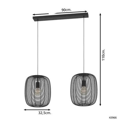 Eglo Luce Pendente Rinroe Acciaio Nero | Adatto per 2x E27