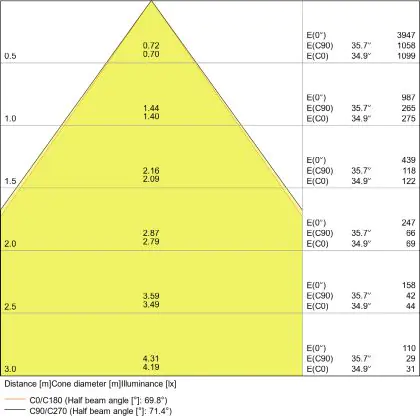 Apertura del fascio luminoso a 60°