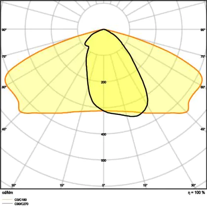 L'alloggiamento impermeabile di questa sorgente luminosa non è l'unica ragione per cui è perfetta per l'uso all'aperto. Infatti bisogna considerare anche la distribuzione della luce di questa lampada stradale, che ha apertura del fascio luminoso di 25x145° ed emette luce di colore 2700K - Bianco Molto Caldo.