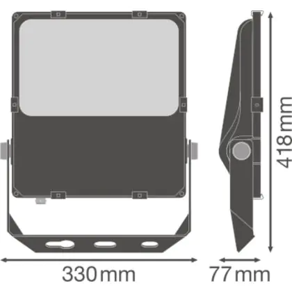 Questo proiettore LED Ledvance è idoneo per un uso in spazi all’aperto (protezione IP66) come illuminazione architetturale o in industrie, stadi, campi sportivi e spazi a rischio di incendio tramite accumulo di polvere.