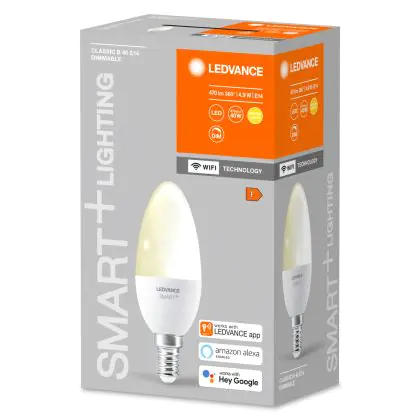 La lampada Ledvance Smart+ Wifi E14 Candela 5W 470lm - 827 Bianco Molto Caldo | Dimmerabile - Sostitutiva 40W è il sostituto perfetto per le tue vecchie lampade 40W con attacco a vite piccolo E14 grazie alla sua tecnologia LED. Passare a LED ti offrirà molti vantaggi!