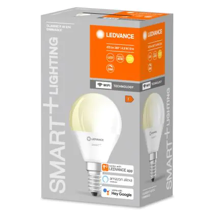 La lampada Ledvance Smart+ Wifi E14 Pera 5W 470lm - 827 Bianco Molto Caldo | Dimmerabile - Sostitutiva 40W è il sostituto perfetto per le tue vecchie lampade 40W con attacco a vite piccolo E14 grazie alla sua tecnologia LED. Passare a LED ti offrirà molti vantaggi!