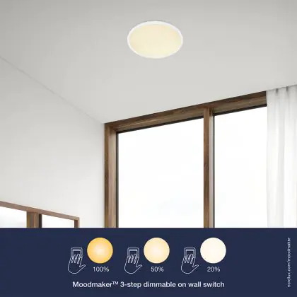 La plafoniera LED Nordlux fa parte della gamma Oja e presenta un design moderno e minimalista. Vanta inoltre una temperatura di colore bianco extra caldo, una lunga durata e il secondo più alto livello di resa cromatica.