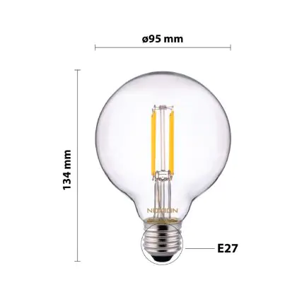 | Nome del fabbricante | Noxion Lucent Filament LED Globe G95 E27 220-240V 7W 806lm CRI80 2700K DIM (60W eqv.) | |