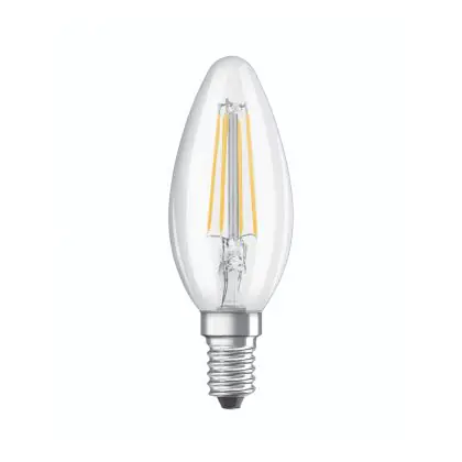 La lampada Osram Parathom Retrofit Classic LED E14 Candela Filamento Chiara 4W 470lm - 827 Bianco Molto Caldo | Sostitutiva 40W è il sostituto perfetto per le tue vecchie lampade 40W con attacco a vite piccolo E14 grazie alla sua tecnologia LED. Passare a LED ti offrirà molti vantaggi!