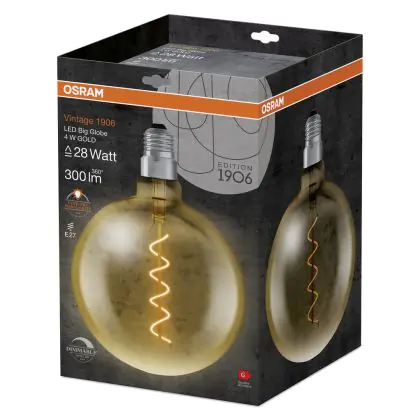Descrizione Osram Vintage 1906 LED E27 Globe Filamento Oro 200mm 5W 300lm - 820 Bianco Molto Caldo | Dimmerabile - Sostitutiva 40W