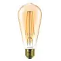 Questa lampadina a filamento con finitura colore oro ricorda le vecchie lampadine ad incandescenza progettate da Edison. È perfetta per regalare all’ambiente un tocco di storia ed eleganza grazie al design vintage. È possibile apprezzare la sua bellezza sia da accesa che da spenta: la soluzione ideale per un’installazione decorativa.