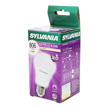 Descrizione Sylvania ToLEDo E27 Pera Ghiaccio 9.5W 806lm - 827 Bianco Molto Caldo | Dimmerabile - Sostitutiva 60W